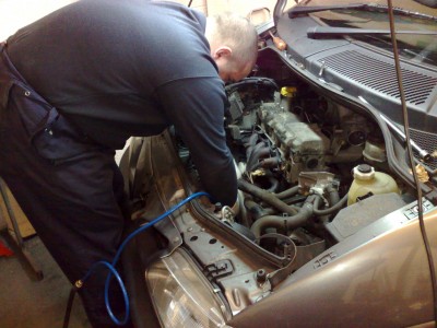 Renault Megane 1.4 with Cylinder head off because of customer not changing cambelt at the set interval and the teeth came off the belt and caused the valves to hit the pistons and bend them. The cylinder head is needs to be removed to fix the valves. For between £100 to around £300 for a cambelt change with tensioners depending what car it is. It''s well worth getting done before the time is due because it could end up like this one needing £800 worth of work done when it fails.